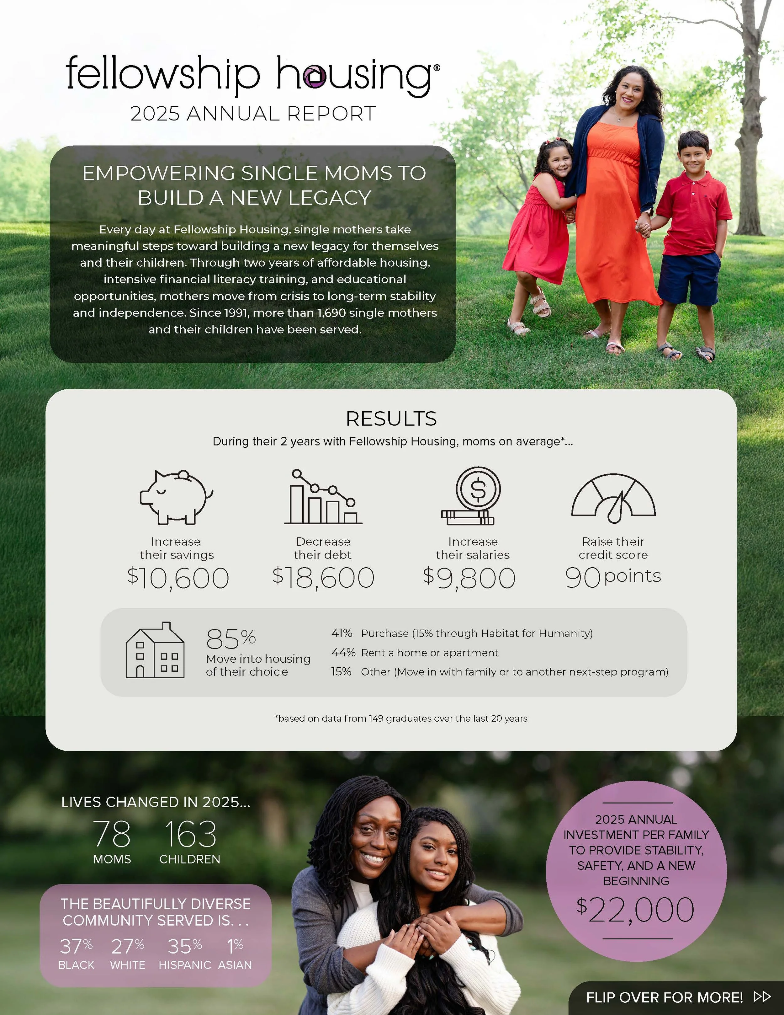 We believe single moms are some of the hardest working people on the planet. It is our joy and honor to come alongside them in times of crisis so they can re-gain stability, break cycles of poverty, and build a new legacy for their families. If you or someone you know is in need, please reach out and let Fellowship Housing serve you.